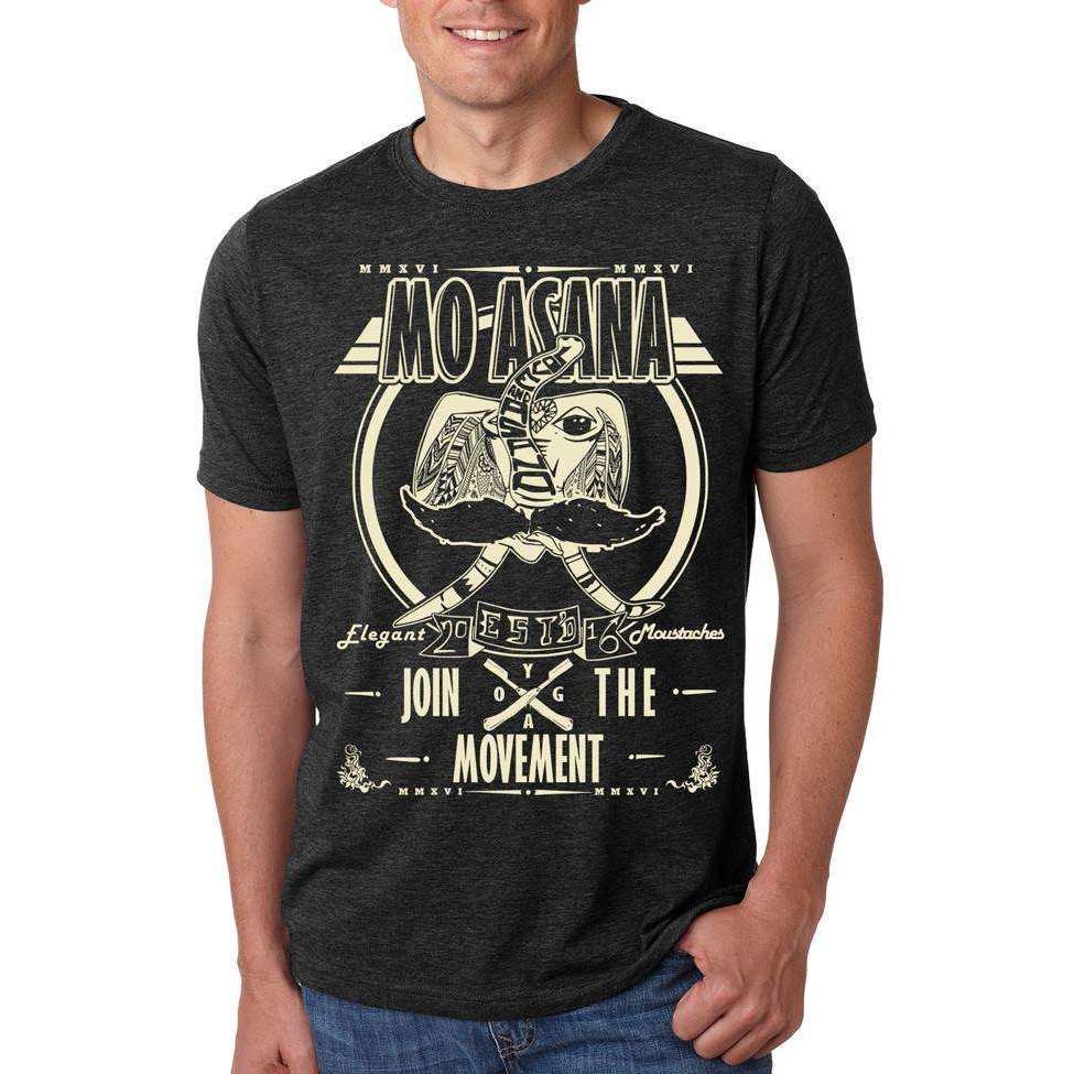 Make a statement with our mustache "mo" asana shirt. Inspired by a whiskey label and created for the mustachioed yoga lover. Signature winking elephant, an elegantly placed mustache, and a nod to 2016 - the year L&A was founded - above the shaving razors surrounded by the letters to spell YOGA. Join the movement and do mo' asana!